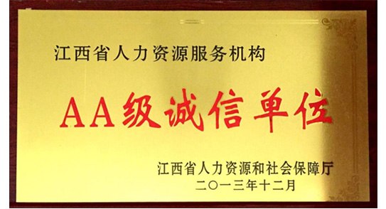 江西省人力資源服務機構AA級誠信單位