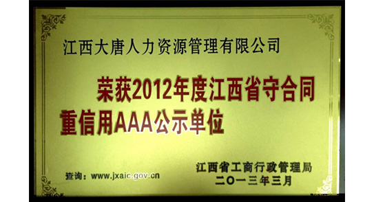 江西省守合同重信用AAA公示單位