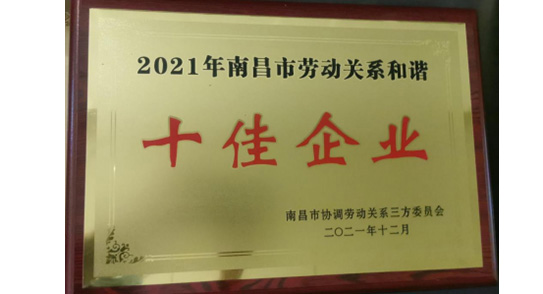 南昌市勞動關系和諧十佳企業(yè)