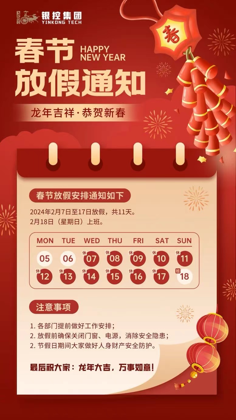 江西銀控科技集團(tuán)有限公司春節(jié)放假通知