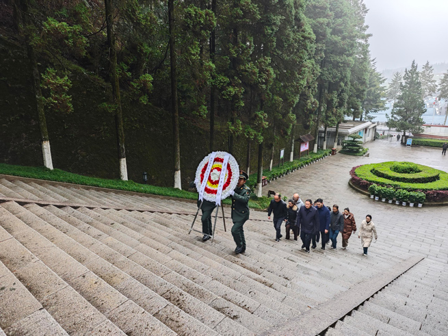當日上午7:30,銀控集團一行人懷著崇敬的心情來到井岡山革命烈士陵園。紀念碑莊重威嚴,靜靜訴說著革命戰(zhàn)爭時期的崢嶸歲月。在李總的引領下,集團管理層人員整齊排列,邁著沉重的步伐,向革命烈士紀念碑敬獻花圈?;ㄈι系木剮鴮懼傲沂坑来共恍唷?,承載著銀控集團對革命先烈的無限敬仰與追思。